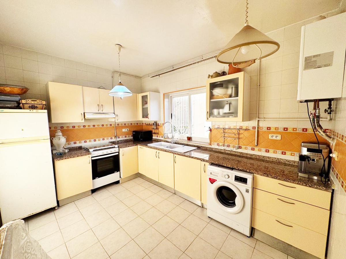 La cuisine est fonctionnelle, bien agencée et équipée d’une gazinière et d’une hotte aspirante. Elle est compléméntée par avec un espace de repas.